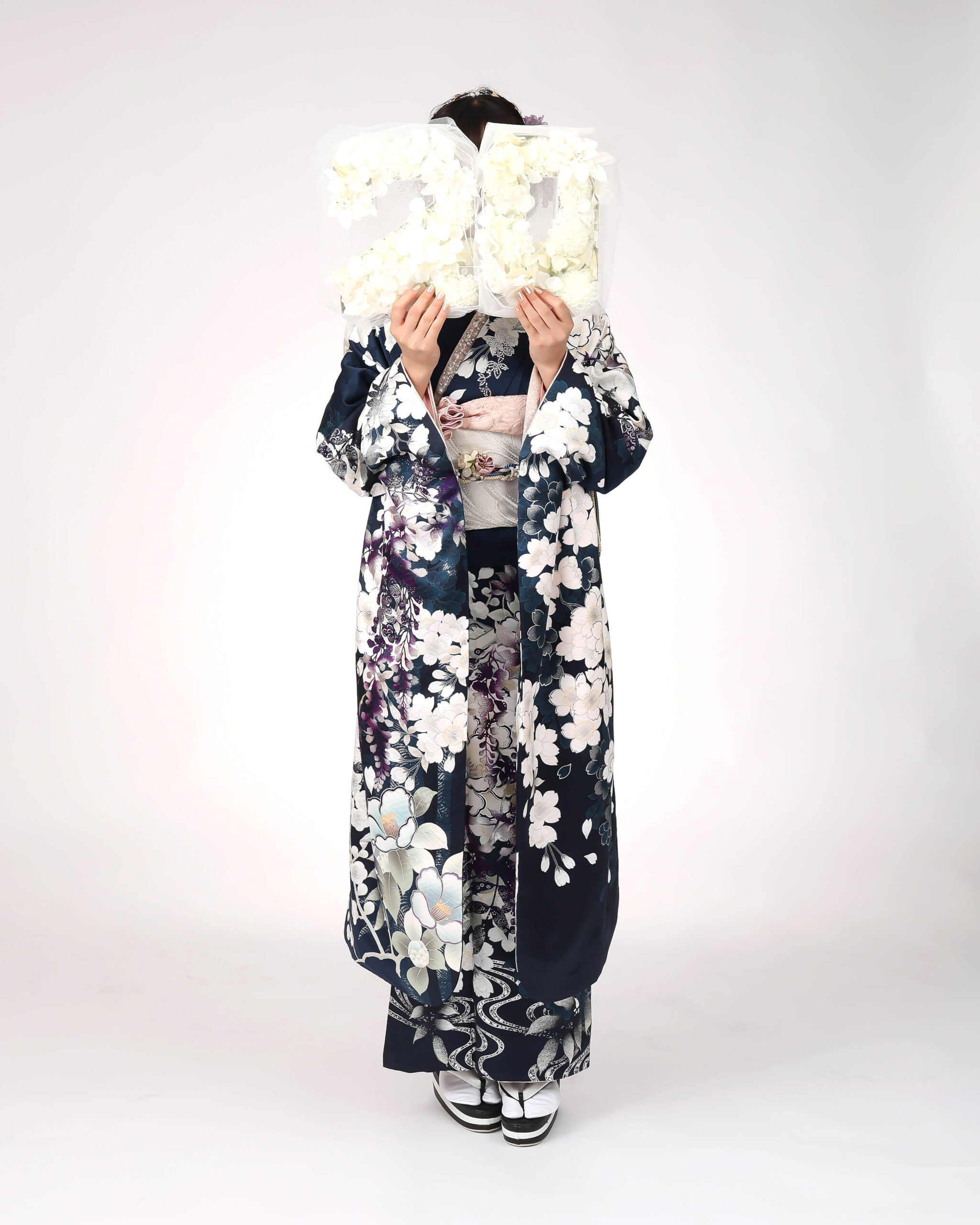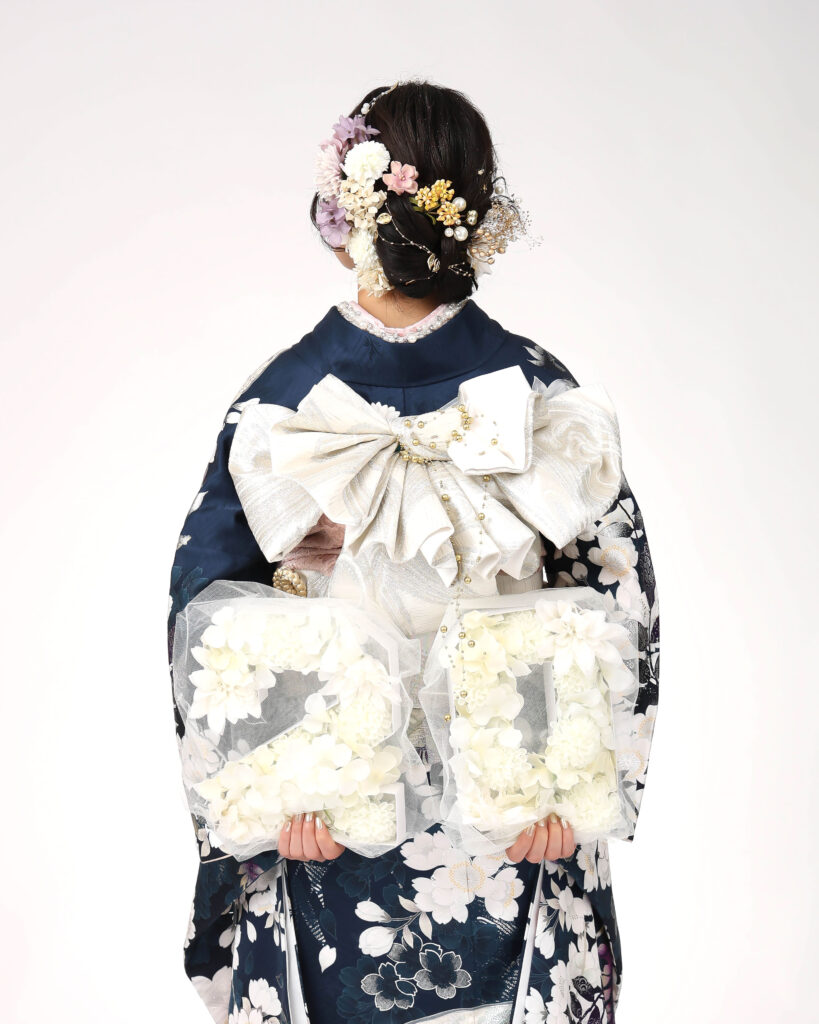 ネイビーにキラキラとしたお花尽くしのお振袖✨